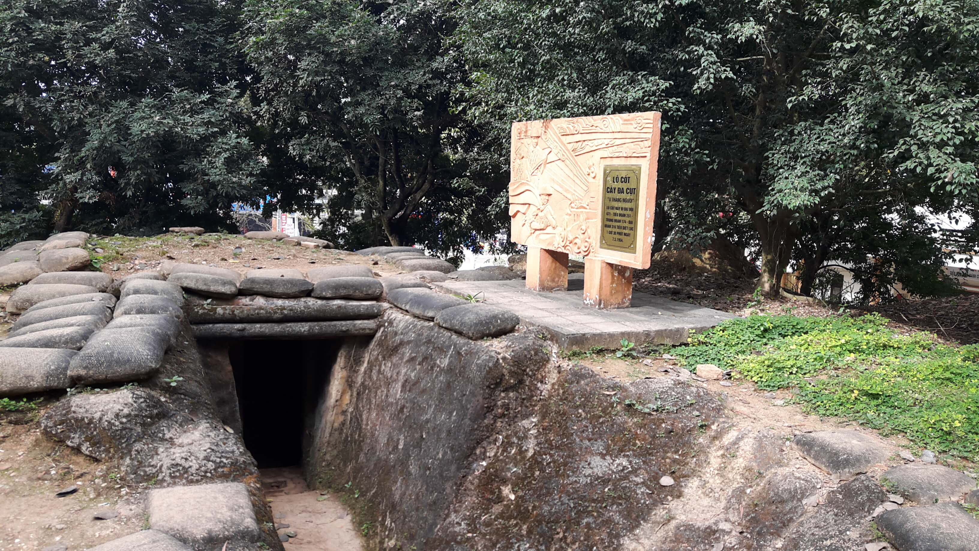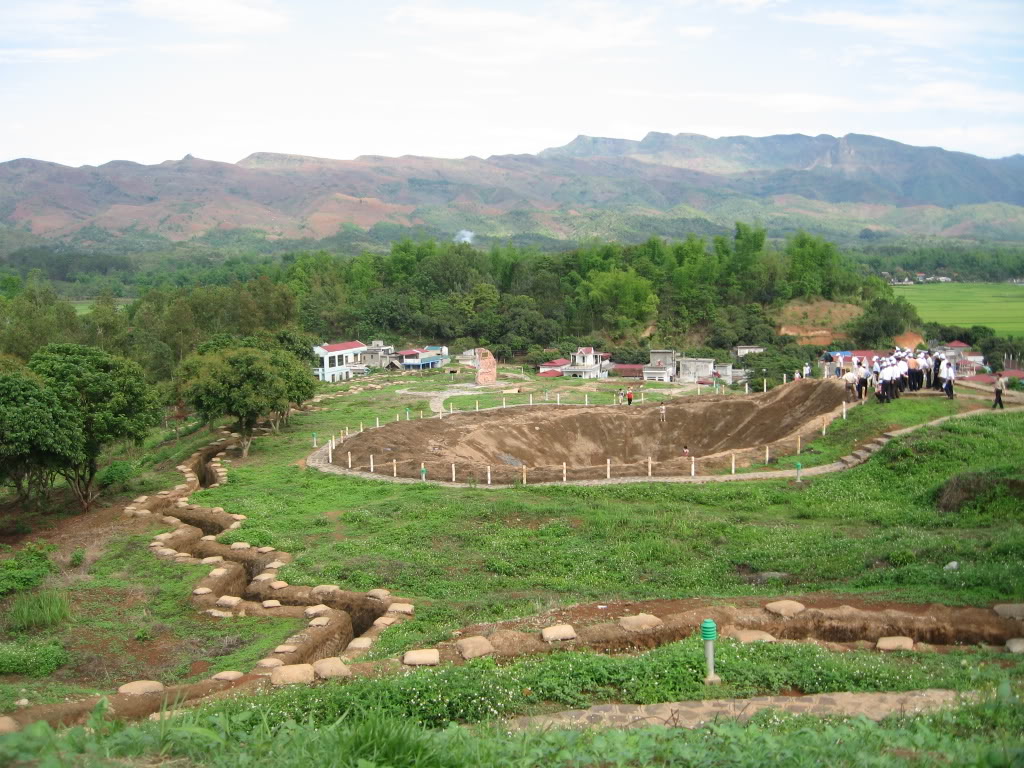 Hill A1 had three defense lines. The first one, stretching from the Cay Da blockhouse, protected the way to the hilltop. Currently this is the main road leading to the top of Hill A1. The second line was for counter-offensive assaults and the last one was a kind of underground bunker atop the hill. There were trenches connecting these three lines. Unaware of the underground bunker atop the hill, Vietnamese troops assaulted from the dried stream. To occupy one third of the hill, Vietnamese troops lost 2516 troops and discovered the bunker thanks to enemy's flare. Tactical method was changed. Despite numerous difficulties, Vietnamese troops dug a tunnel to destroy the bunker with explosive. After 16 days and nights, Vietnamese troops found a brick foundation, which was left from some construction built by French troops in 1940. Considering that was the bunker wall, Vietnamese troops brought 970kg of explosive there and detonated them at 20h30pm on May 6th, 1954. The pressure of the explosion made the ears of the French captain in charge of the bunker bleed. He thought that was a new kind of weapon used by Vietnamese troops and surrendered. The explosion left an enormous hole like a crater, which is rather afar from the top of Hill A1. This hole now serves as a tourist attraction.
