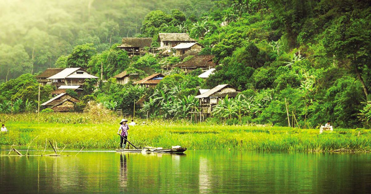 Pac Ngoi Village has more than 40 traditional stilt houses locating on the slope of mountains which surround Ba Be Lake, emphasizing the beauty of this famous ecotourism destination. The village belongs to municipality of Bac Kan province.