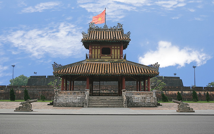 Location: Pavilion of Edicts is situated right in front of the Flag -Tower and by the National Highway No.1A which crosses Hue City. Characteristic: It is a delicate pavilion with a south view. In front of the Pavilion is a large court leading to the Nghinh Luong Pavilion (Pavilion for Fresh Air) on the Perfume River bank.