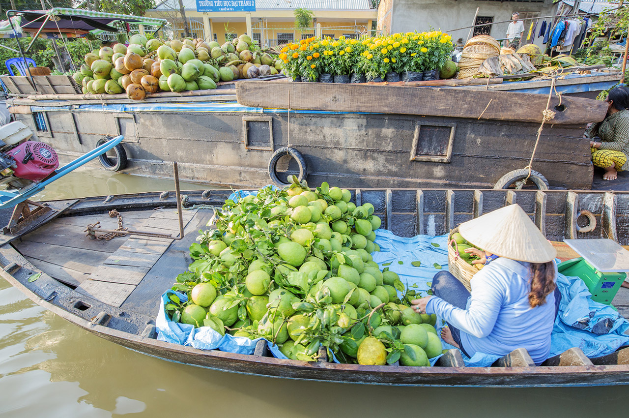Visit Cai Rang floating market at Can Tho by a local river boat, this is a fascinating place where you can see a flotilla of boats at all size that gather every day to exchange their agriculture products. This is the most crowded and bustle floating market in Mekong Delta.