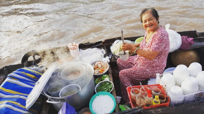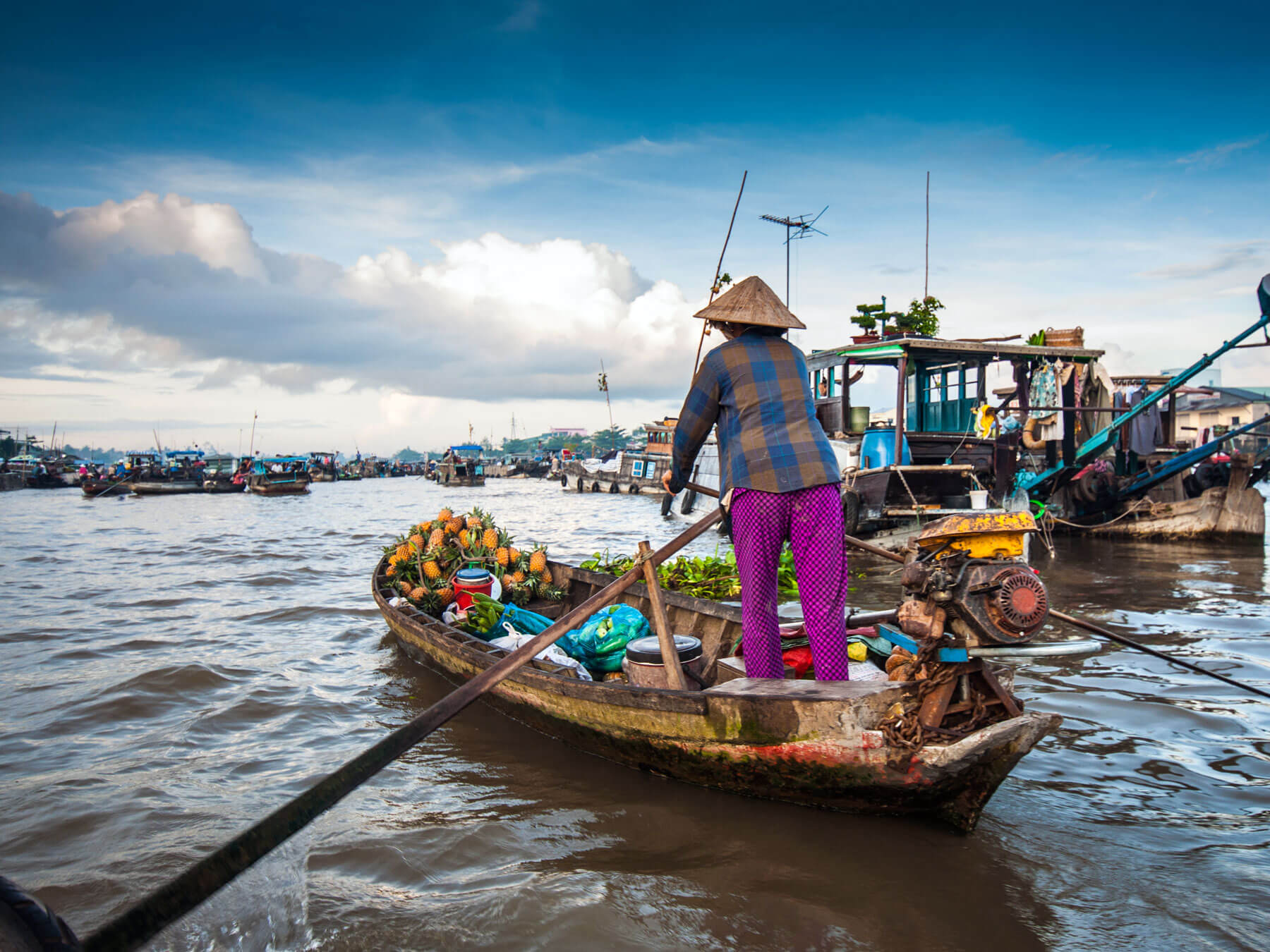 Transfert matinal à l’embarcadère pour la visite du marché flottant de Cai Rang, marché flottant de grossistes le plus important du delta du Mékong, reconnu comme un patrimoine national culturel immatériel. Poursuite la fabrique familiale des vermicelles de riz Hu Tieu situé au bord du petit canal, une spécialité délicieuse du Vietnam. Possibilité de gouter un pizza Hu Tieu (vermicelles de riz de Saigon frits). Déjeuner. Retour à Ho Chi Minh ville et visite d’un atelier de laque avec démonstration. Dîner. Nuit à l’hôtel.