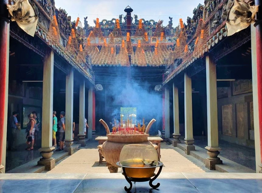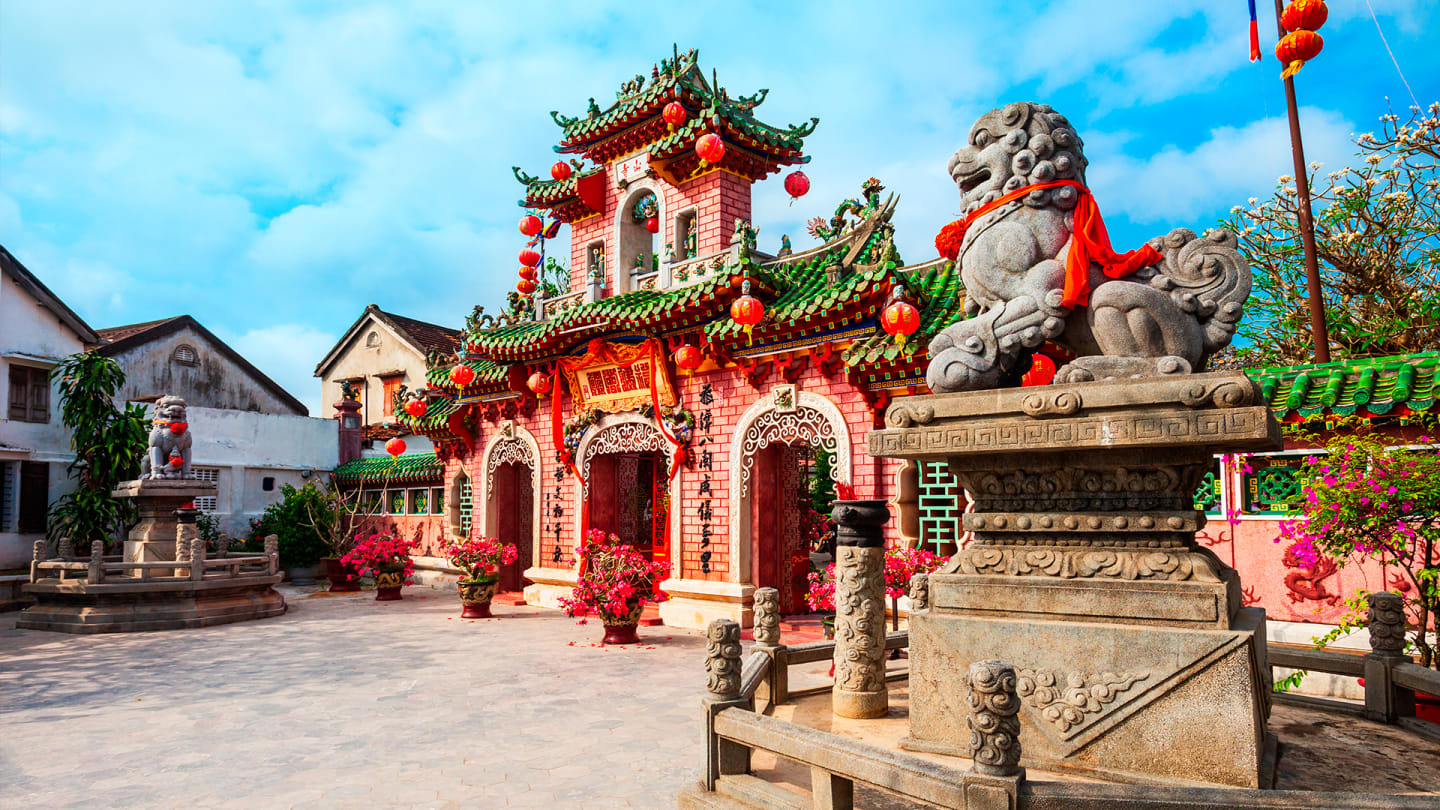 Transfert à l’aéroport, envol pour Da Nang. Arrivée, petite route pour rejoindre la vielle ville Hoi An (ex Faito) reconnue patrimoine mondial de l’UNESCO 1999 avec un arrêt aux montagnes de Marbres. Déjeuner. Visite de la petite ville Hoi An : Déambulation dans les rues piétonnes en montant sur le pont couvert japonais, visite l’ancienne maison et la congrégation chinoise. Poursuite la découverte de l’artisanat de lanternes et de filatures de soie. Dîner et nuit à l’hôtel.